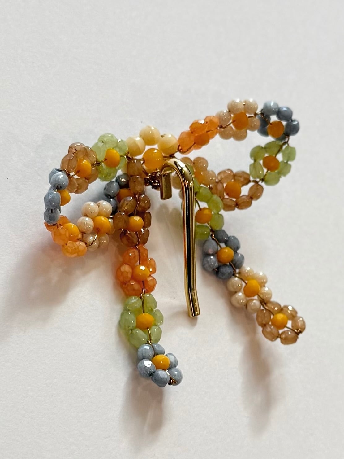 色 : マルチ サイズ : 横…約6㎝ 縦…約5㎝ ※素人採寸の為、若干の誤差がある場合がございますが予めご了承頂けますと幸いです。 こちらはポニーフックタイプのものです。 ゴムで結んだところに金具を差し込んで使用します。 状態 : 新品 注意事項 ※ハンドメイド作品になります。