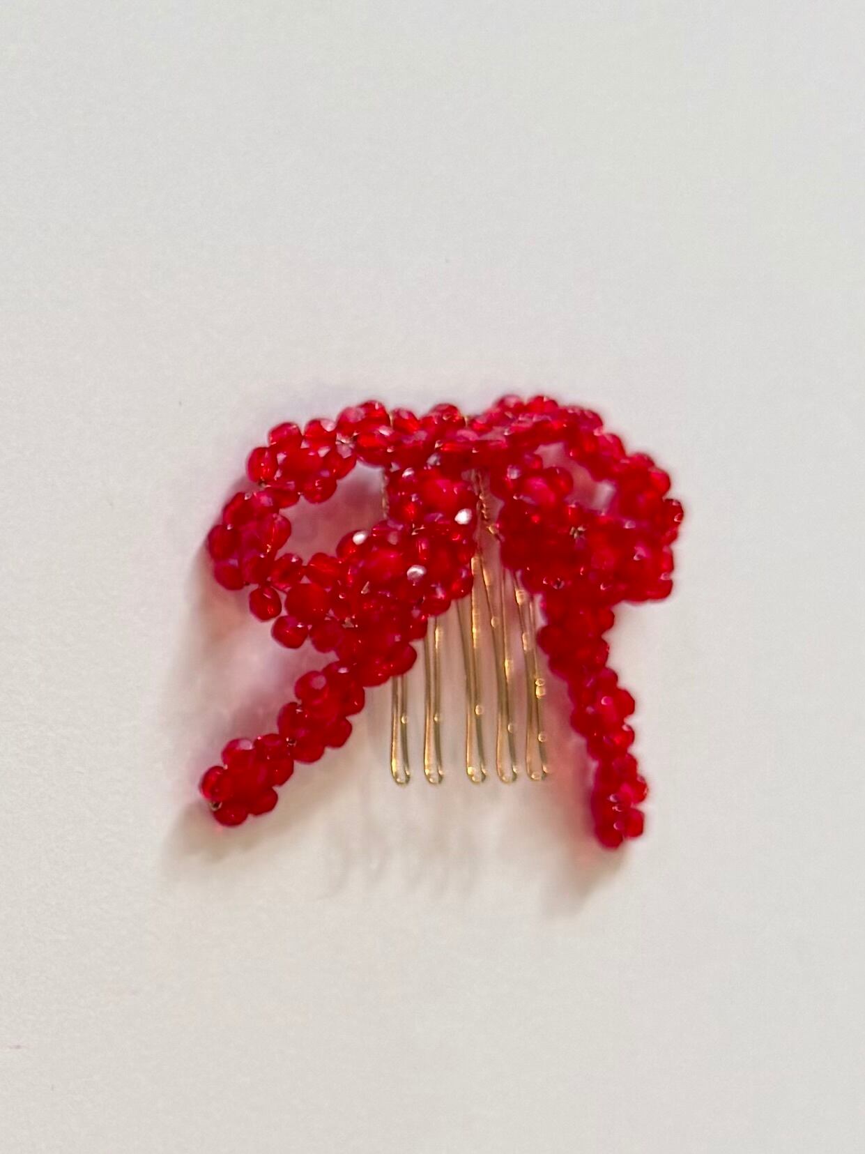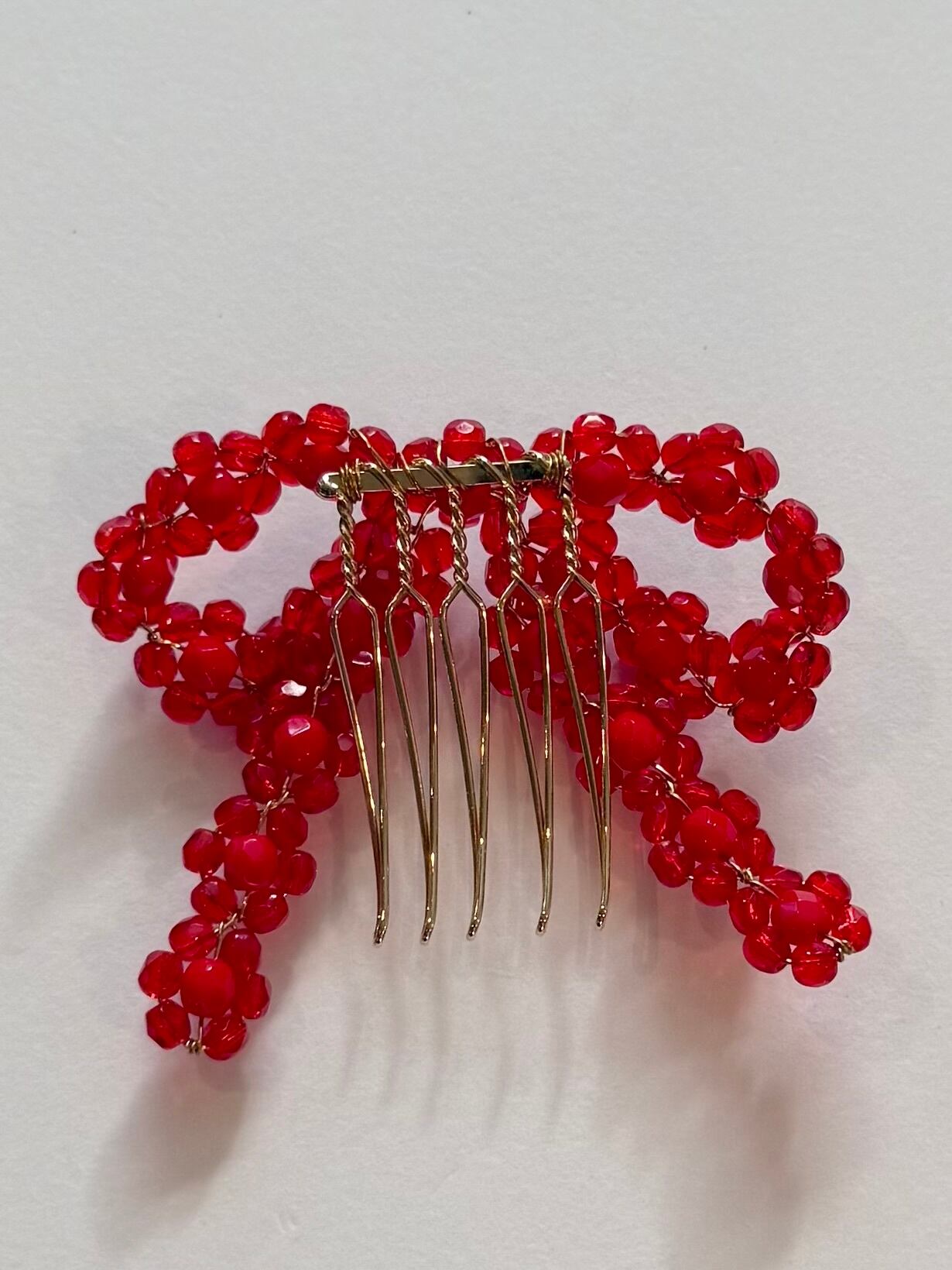 色 : クリアレッド×レッド サイズ : 横…約6㎝ 縦…約5㎝ ※素人採寸の為、若干の誤差がある場合がございますが予めご了承頂けますと幸いです。 こちらはコームタイプのものです。 状態 : 新品 注意事項 ※ハンドメイド作品になります。