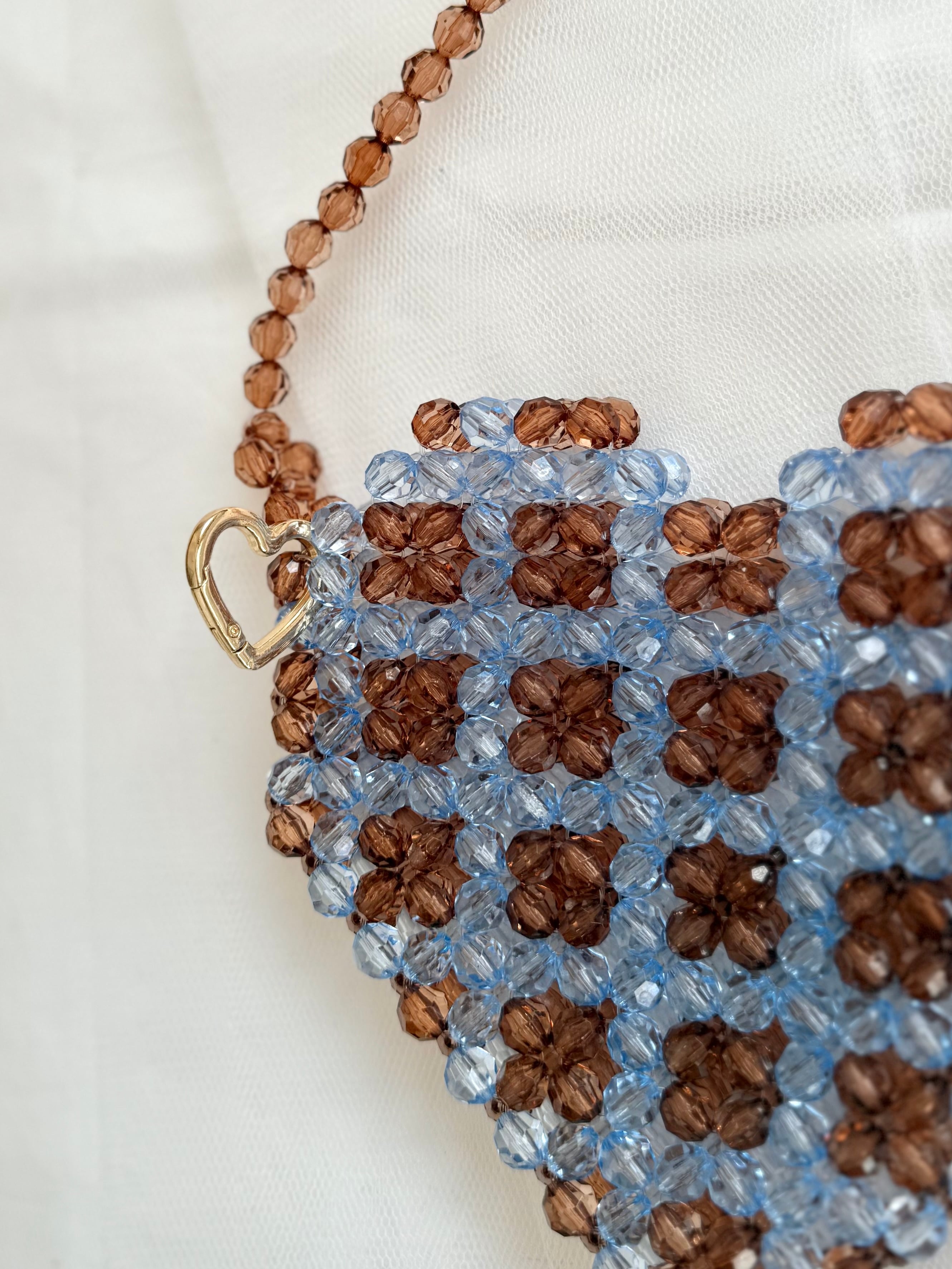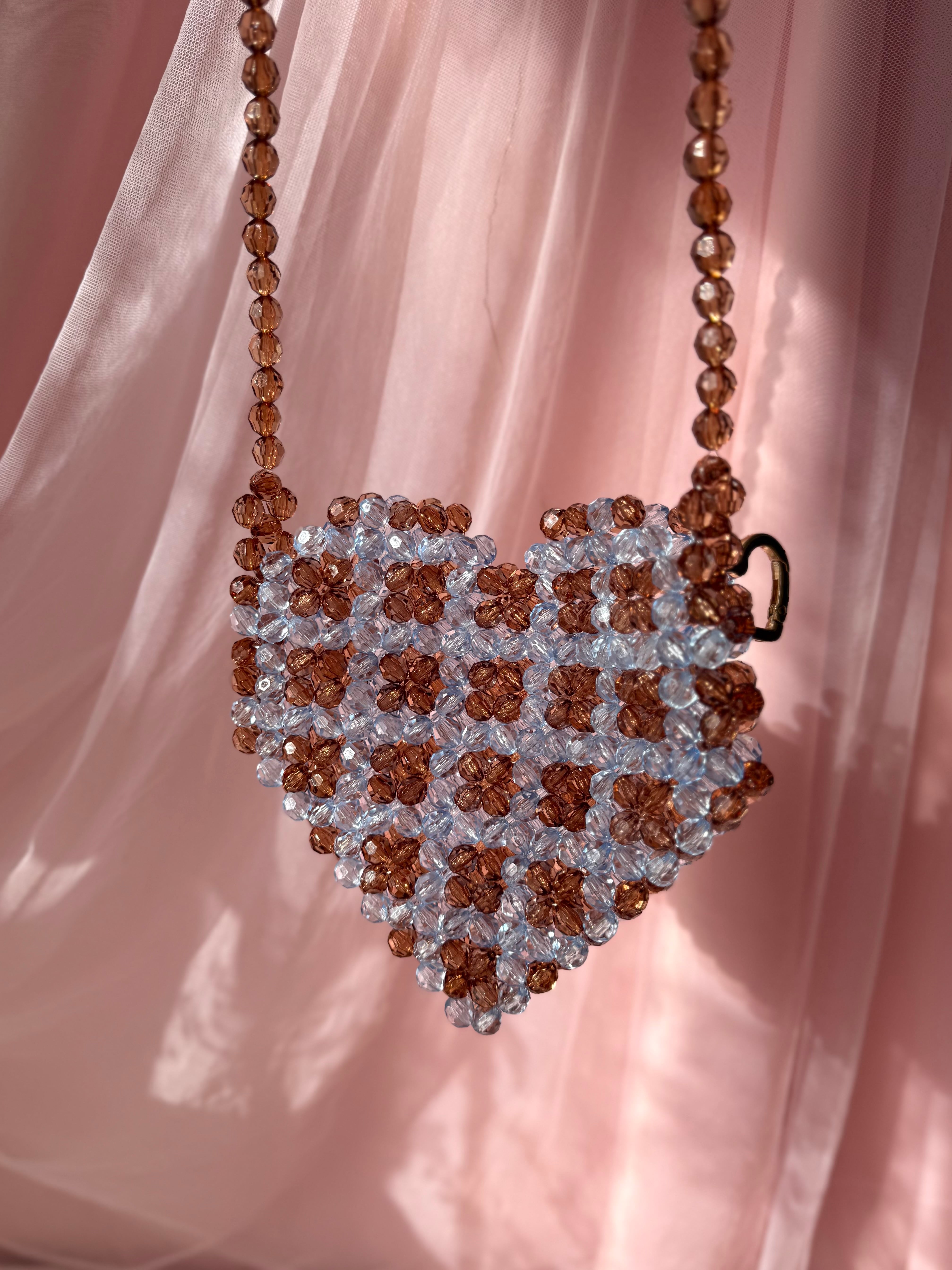 大好きなハートのビーズバッグ、こちらはSサイズです。Sサイズはそこまで物が入らないので、かわいさ重視なファッションアイテムとして使って頂けたら嬉しいです。